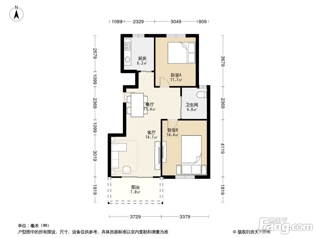 户型齐全,主打户型方正,明卫,明厨,主卧朝南二居