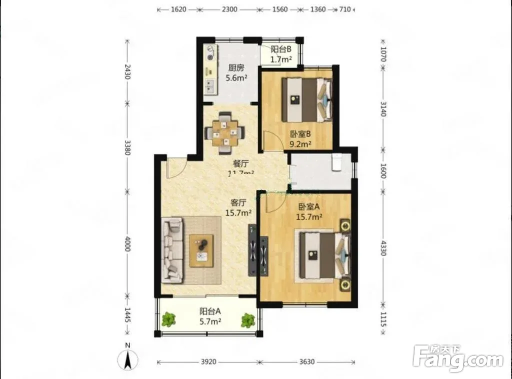 户型齐全,主打户型方正,明卫,明厨,主卧朝南二居