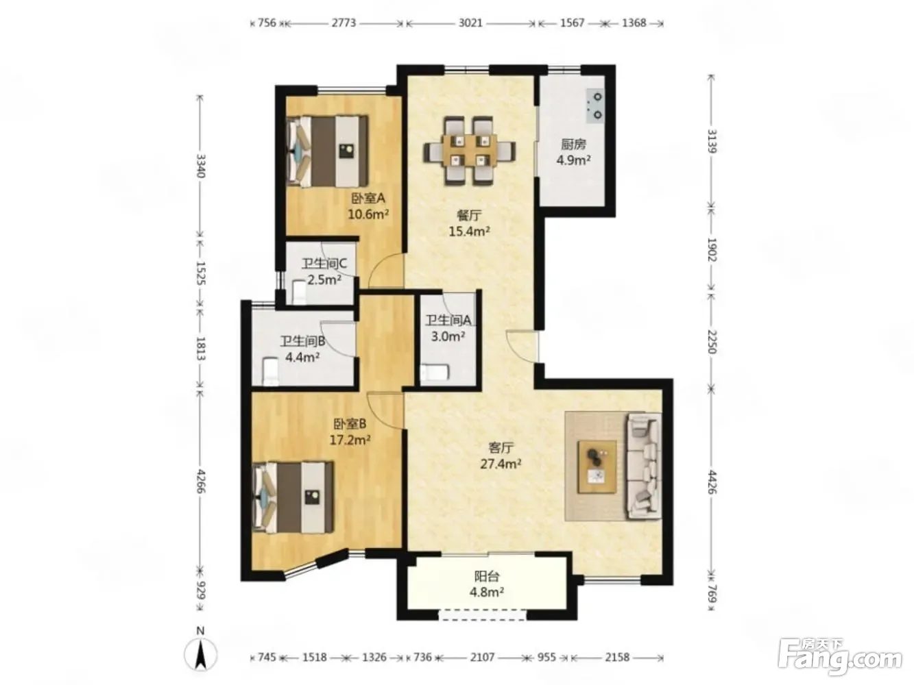 2室2厅3卫