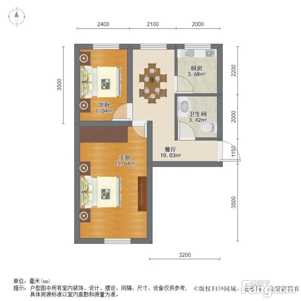 户型齐全,主打户型方正,明厨,主卧朝南二居