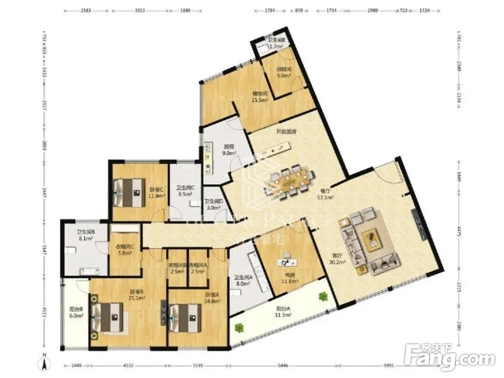 房屋拥有相对宽松的尺寸,布局通透,动静分离,设计豪华