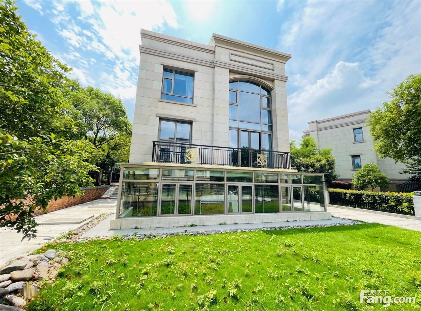 这套房子我亲自上门实勘过: 房子建筑面积300平,其中地下室99平,全明地下室,花园临河,开发商装修中央空调和地暖都有,看房方便有钥匙.