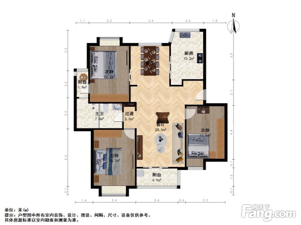 户型齐全,主打户型方正,明厨,双阳台,主卧朝南三居