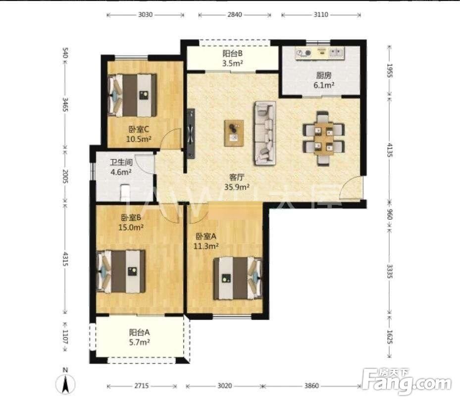 3室2厅1卫