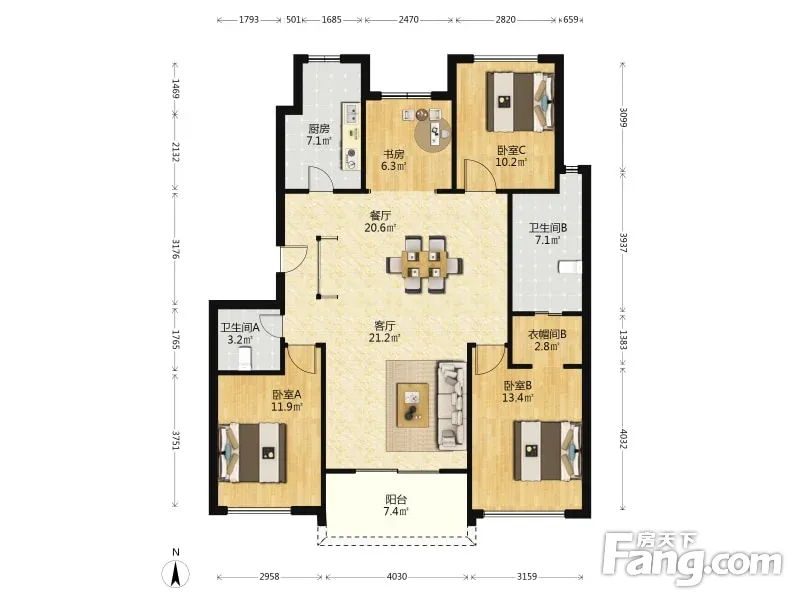 户型齐全,主打户型方正,明厨,明卫,独立衣帽间三居