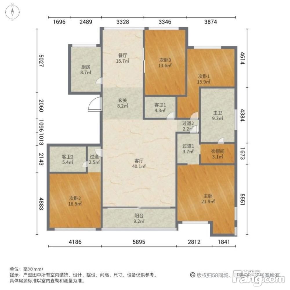 户型齐全,主打客厅朝南,卧室朝南三居