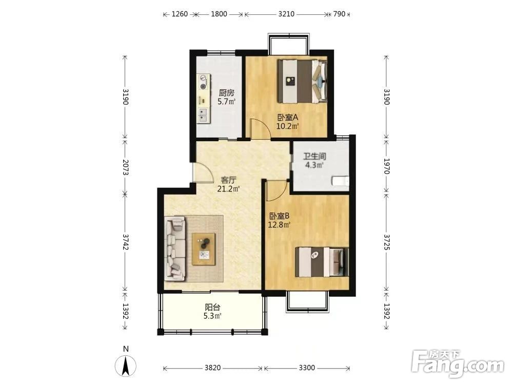 南北,2房税费少,诚心出售 户型好