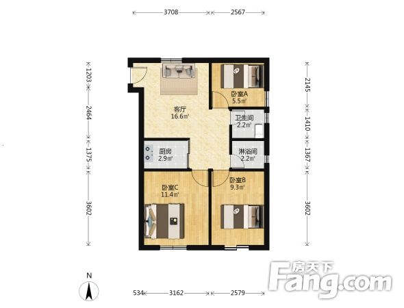 3室1厅2卫
