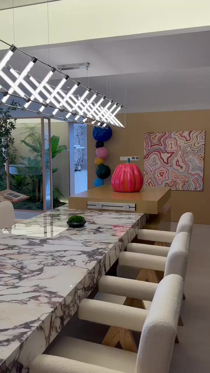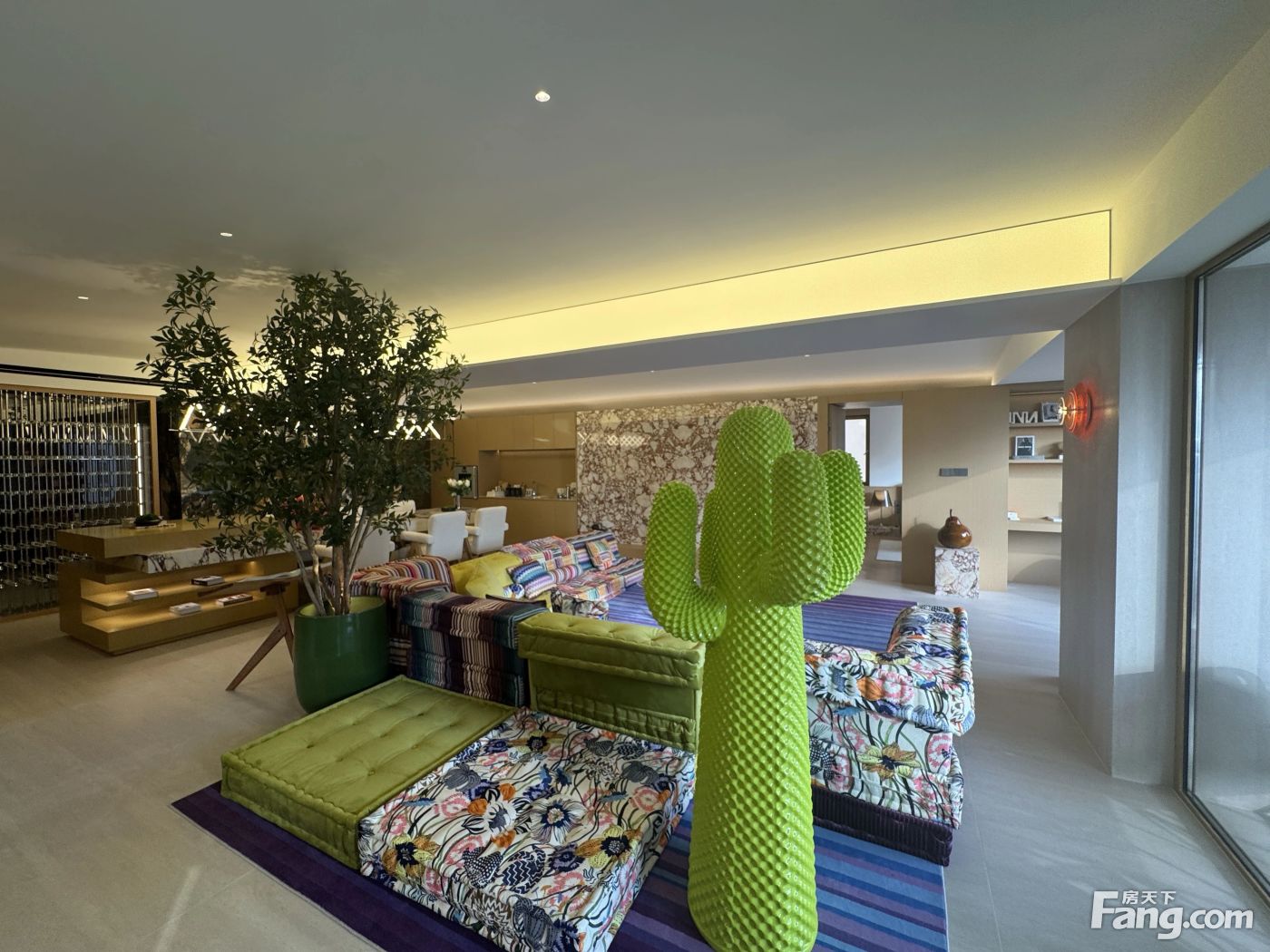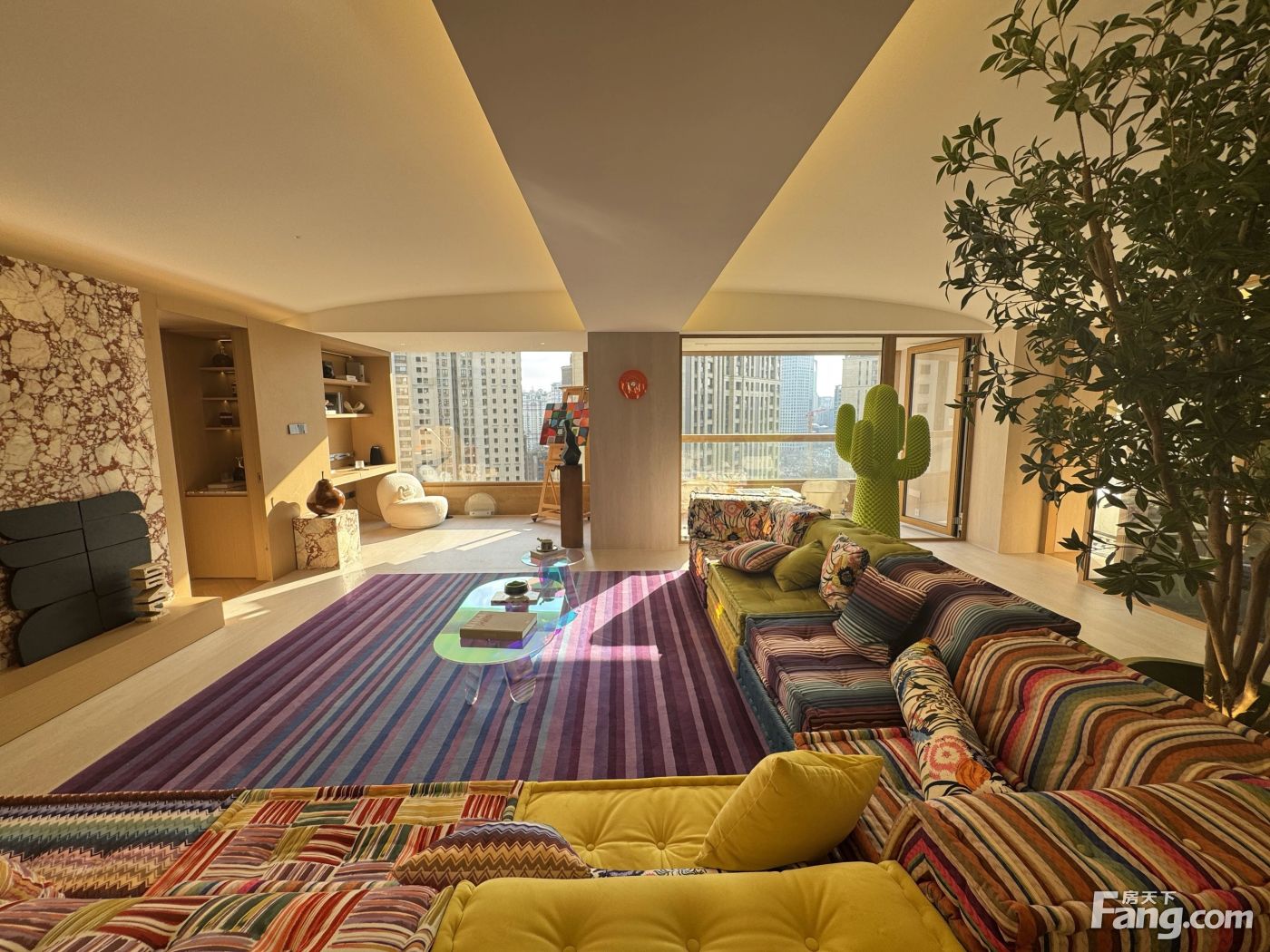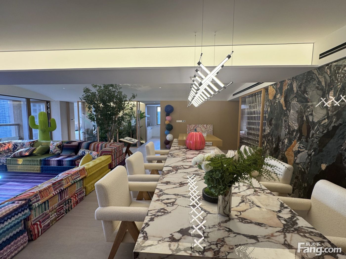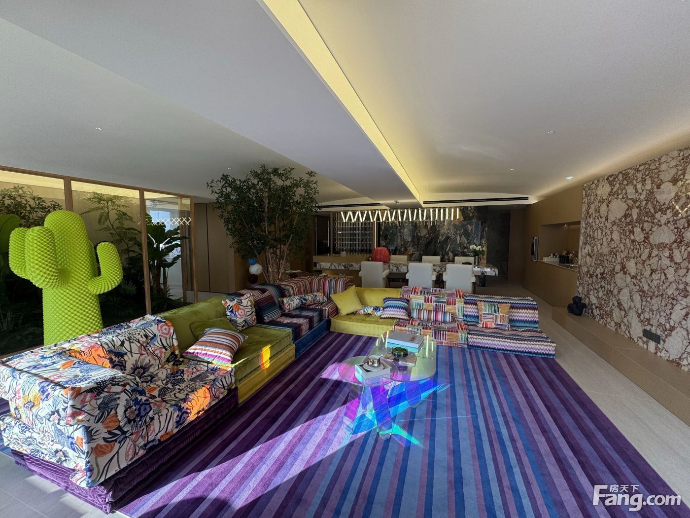 客厅餐厅相连(朝南8米长大横厅!带2个景观阳台)房型5房2厅4卫,4个房间朝南,1个房间朝东!业主软张和硬装总共花了800多万!沙发是黄晓明家同款沙发!家具家电都是用的品牌!