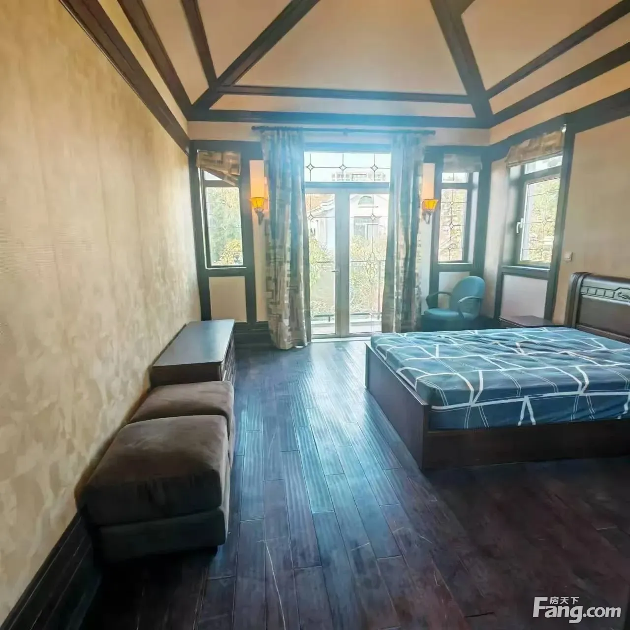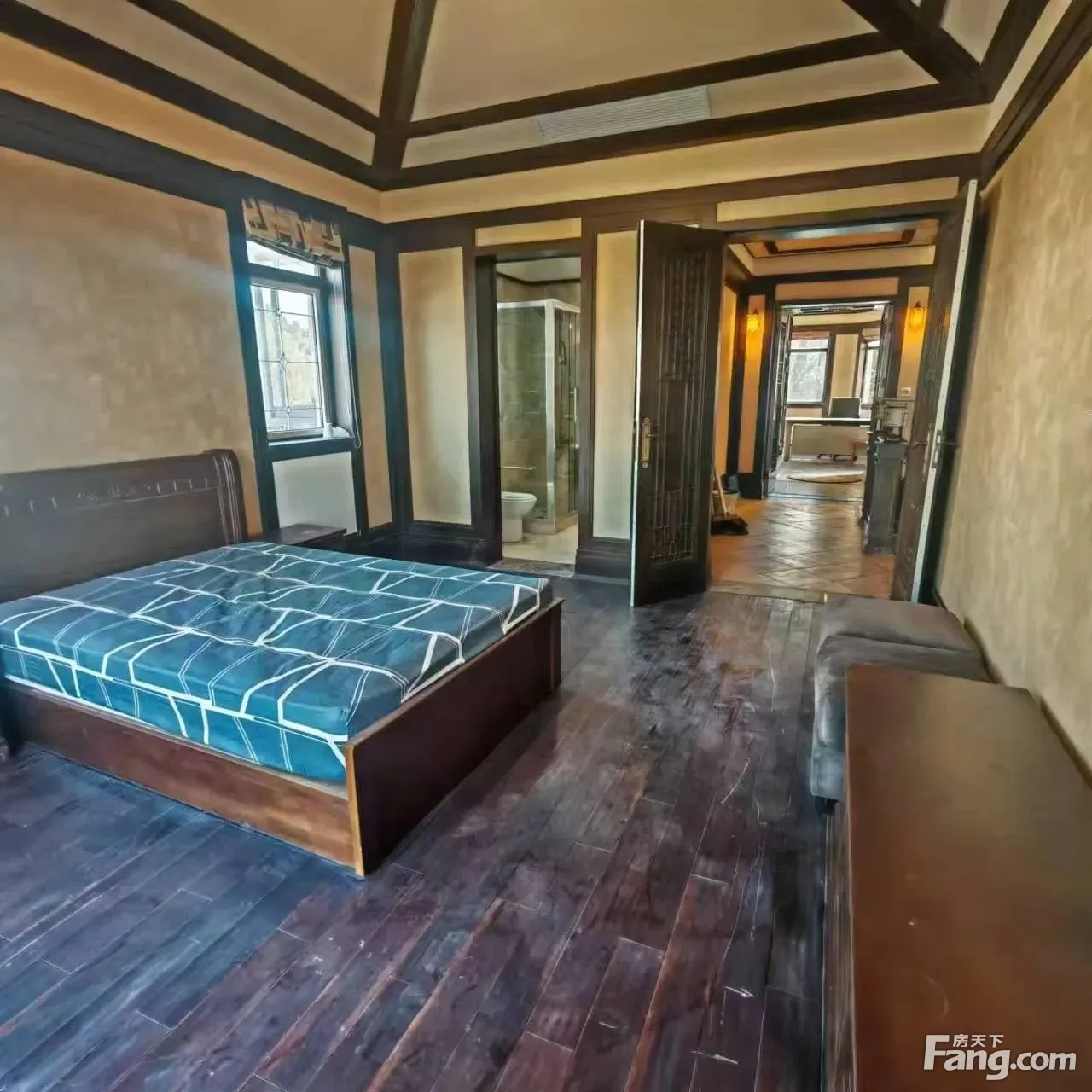 此房在小区中间位置北进门南花园,花园有1000平,南面临河视野开阔无遮挡。门口也很宽阔可以停3辆车。地面2层附赠全明地下室,地下室有210平做了活动空间。一楼进门是进门厅,进门厅右边是南北通透挑空的客厅,客厅南面是餐厅连着厨房朝南带落地窗。进门厅左边是2个卧室,其中1房朝北朝东,1房朝南朝东。二楼有3个卧室都是独立套房,其中2房朝南1房朝北。楼梯口北面是一个起居厅朝北带阳台。