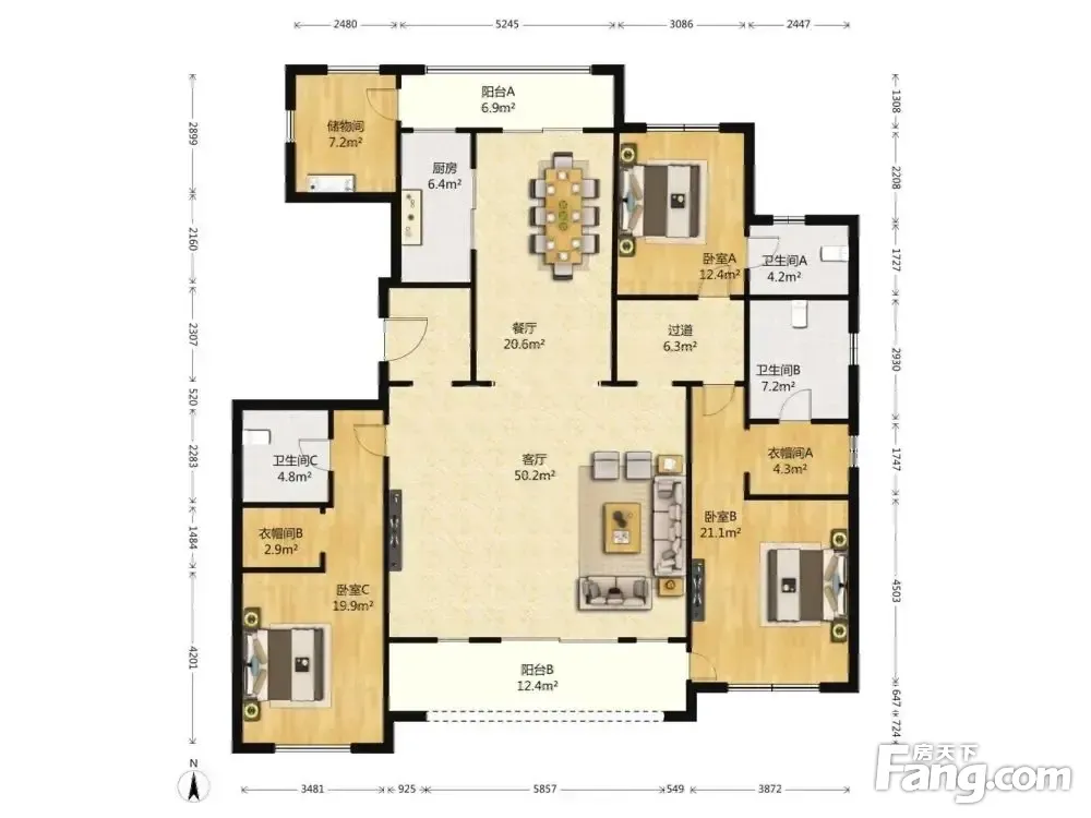 房屋拥有相对宽松的尺寸,布局通透,动静分离,设计豪华