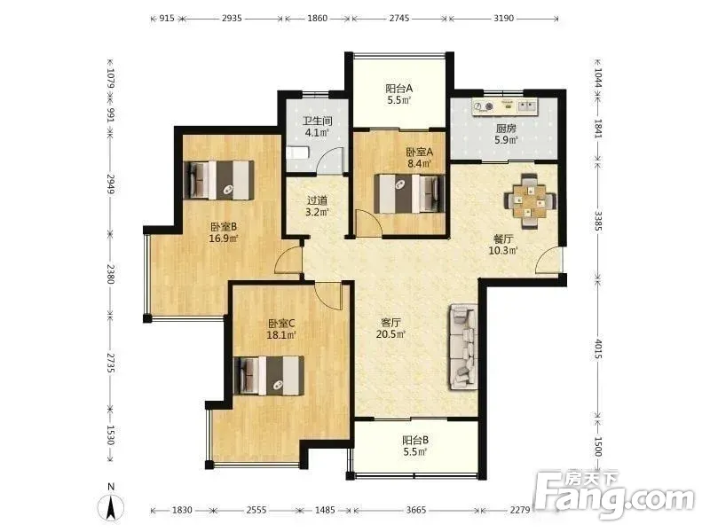 3室2厅1卫