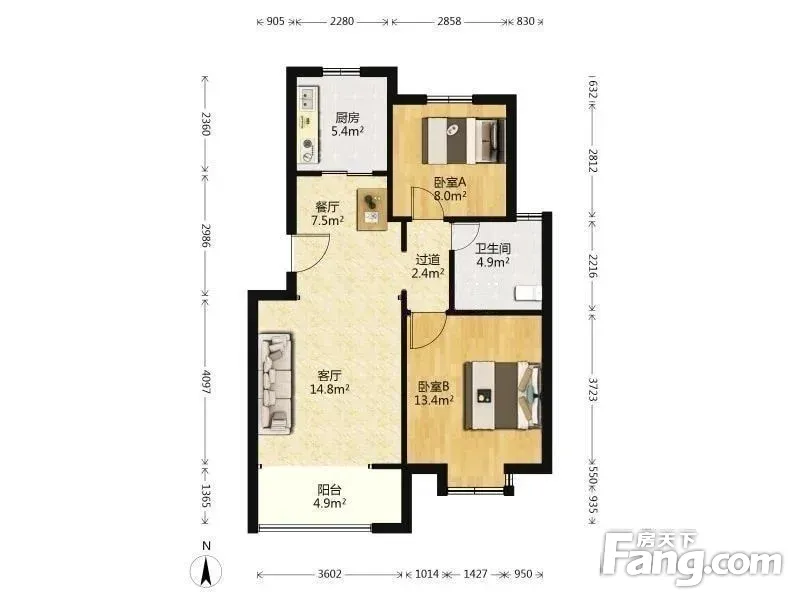 婚房装修2室2厅 南北通透