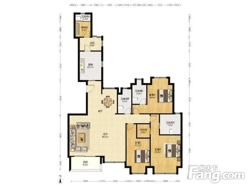 房屋拥有相对宽松的尺寸,布局通透,动静分离,设计豪华