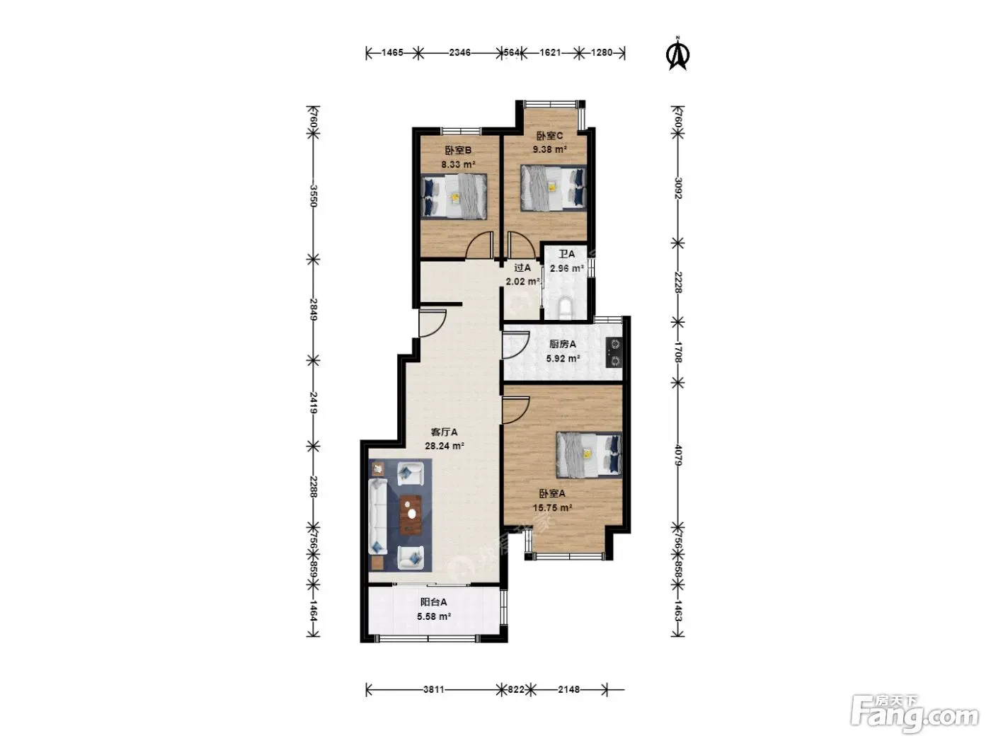 户型齐全,主打南北通透,客厅朝南,卧室朝南,餐客分离三居