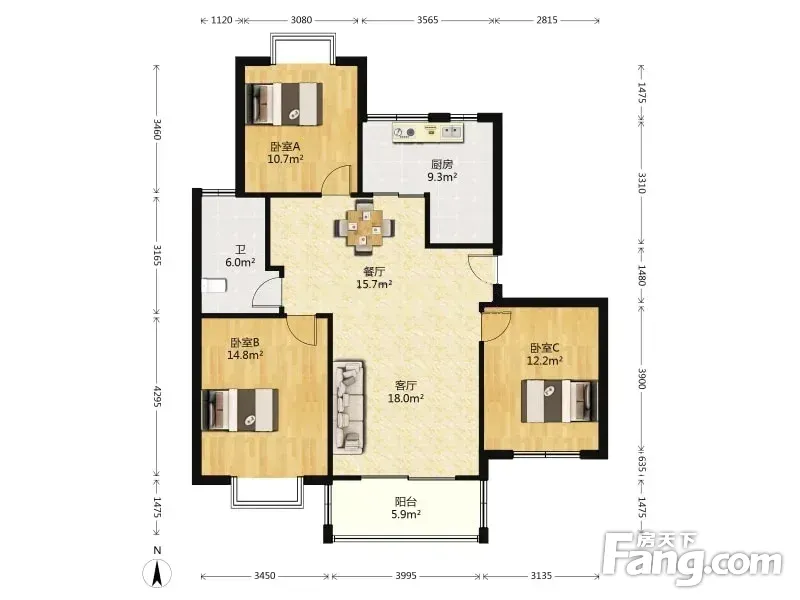 3室2厅1卫