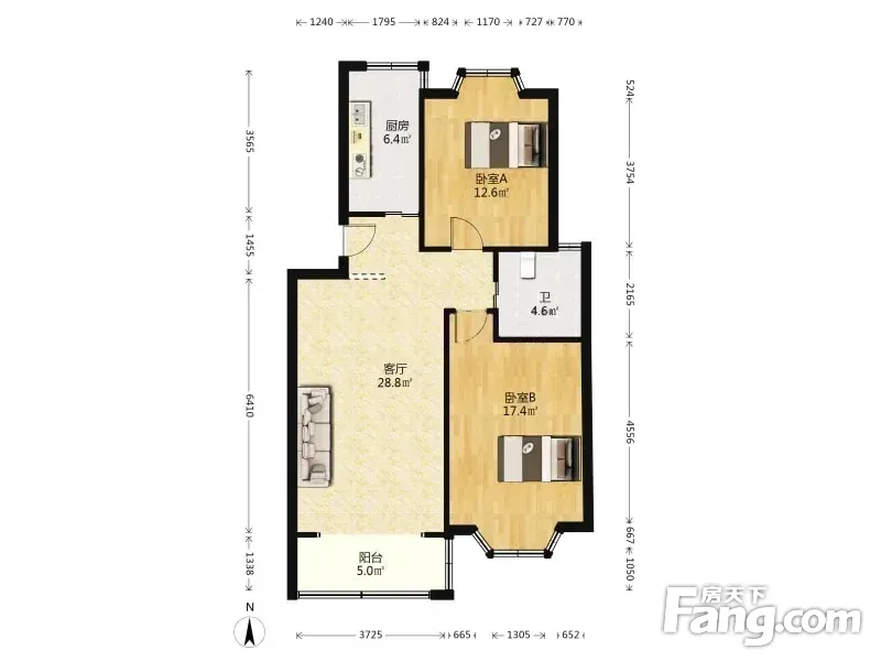 必看好房 南北通透两室两厅商品房