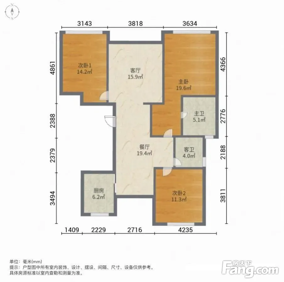 户型齐全,主打南北通透,客厅朝南,卧室朝南,餐客分离三居