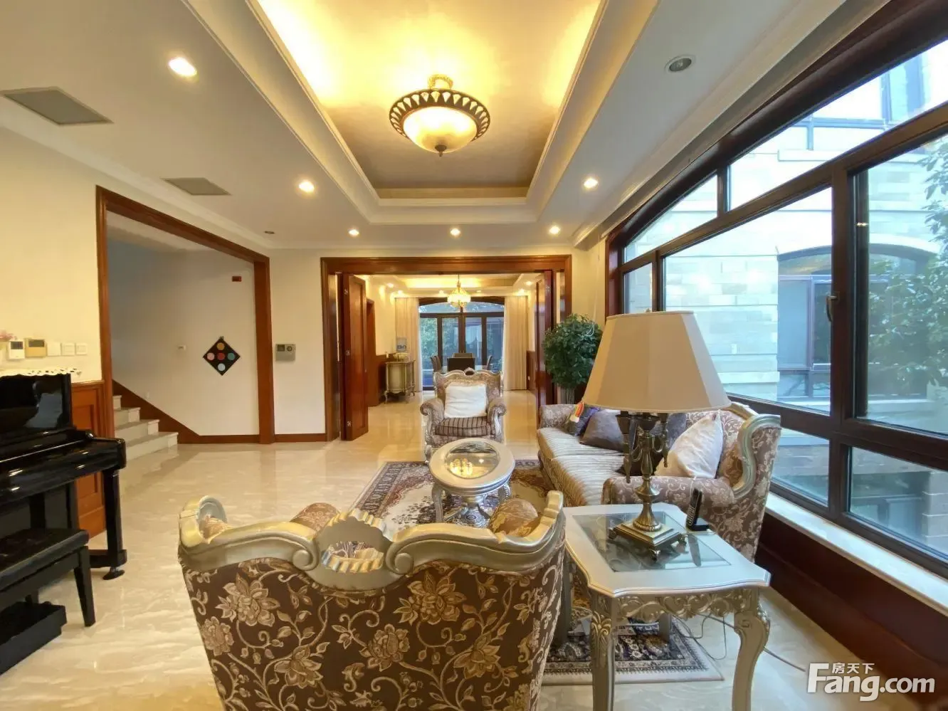 视频是室内外局部情况,具体细节请联系我带您实地考察看看吧,感谢您在线上浏览 一句话说卖点:房屋不临马路+南花园比较大(已硬化)+南侧是公共绿化 产证面积:515平含地下室1857.97平 即将满五年,买进价1600万,所以税费相对就低很多哦 地上5房3厅4卫1厨 1楼:2房1卫,其中1个卧室朝南 2楼:3房2卫+书房,其中2个卧室南向采光 地下室采光好 占地面积:778.39平, 花园净面积总计大约600平吧 南临公共绿地、视野开阔