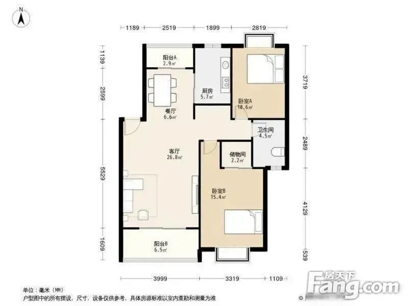 户型齐全,主打户型方正,明厨,明卫,双阳台二居