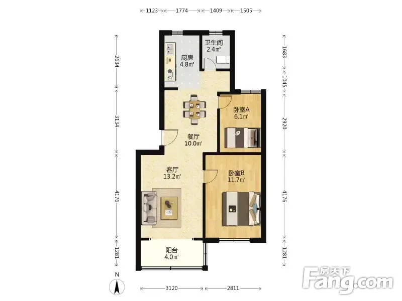 户型齐全,主打户型方正,明厨,明卫,客厅朝南,全明格局,主卧朝南一居