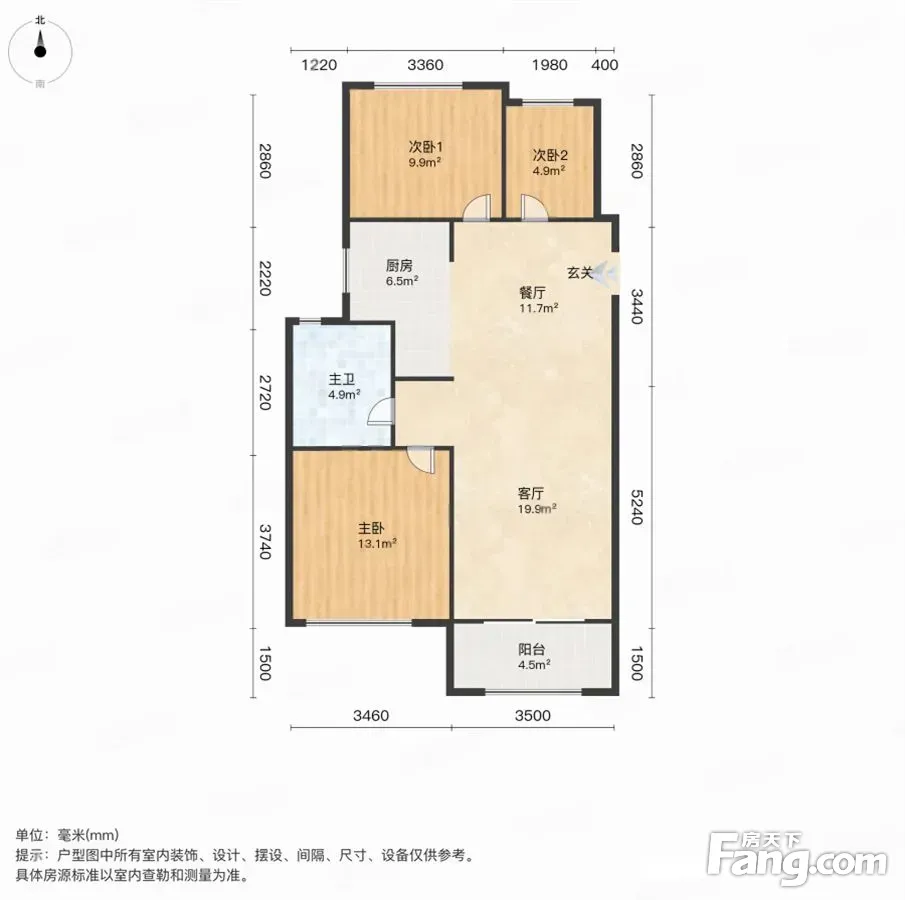 户型齐全,主打南北通透,主卧朝南,大面宽阳台三居