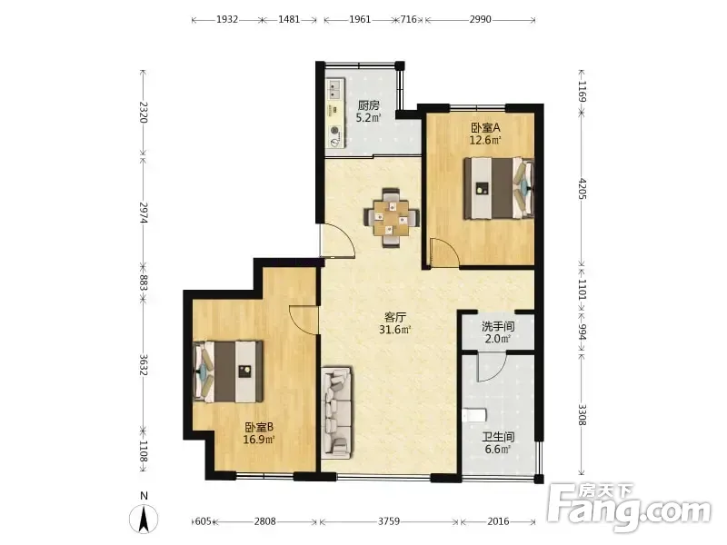 户型齐全,主打户型方正,明厨,明卫,主卧朝南二居