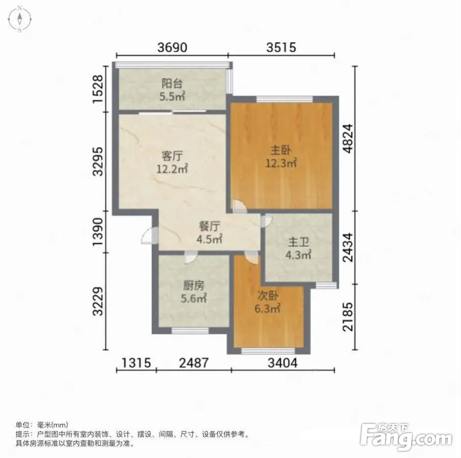 户型齐全,主打户型方正,明卫,明厨,主卧朝南二居