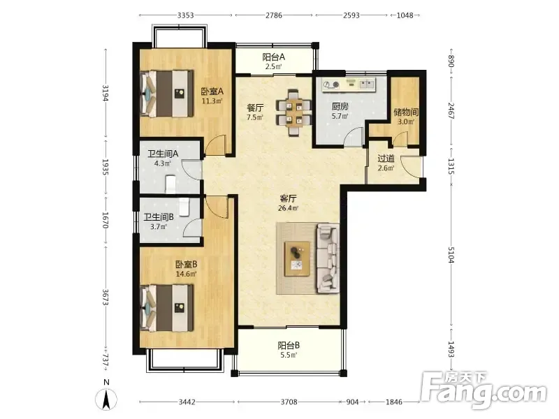 2室2厅1卫