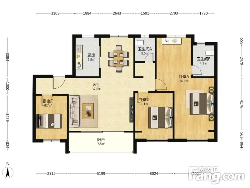 3室2厅1卫