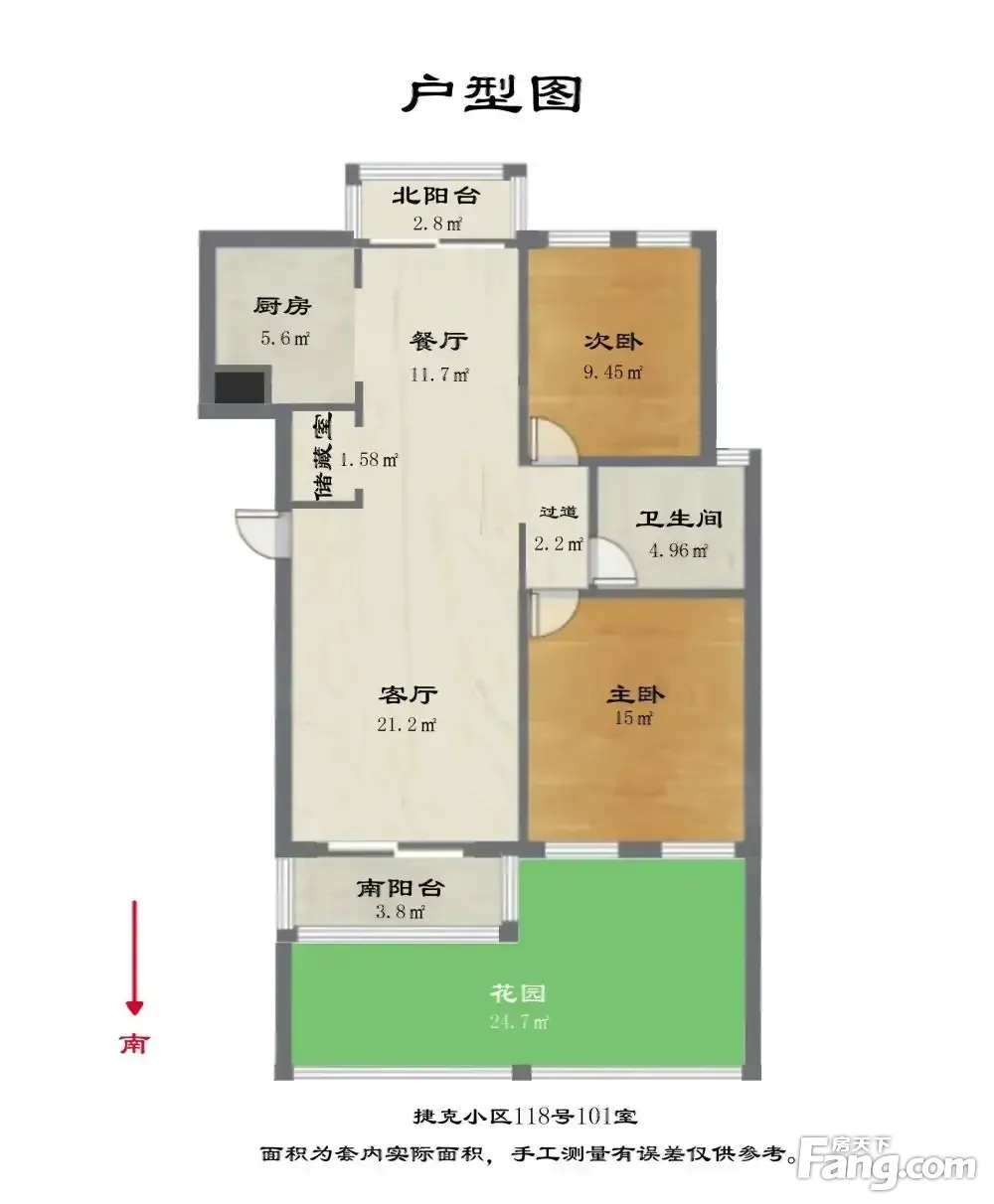 1.产证面积:101.07平。 2.房屋户型:2房2厅1卫,一房朝南一房朝北客厅南北通透带双阳台外加一楼的花园。附带一个储物间可做卫生间。 3.装修状况:毛坯,改造空间大。 4.税费情况:满五年且 、省税费, 5.看房时间:看房随时有钥匙。