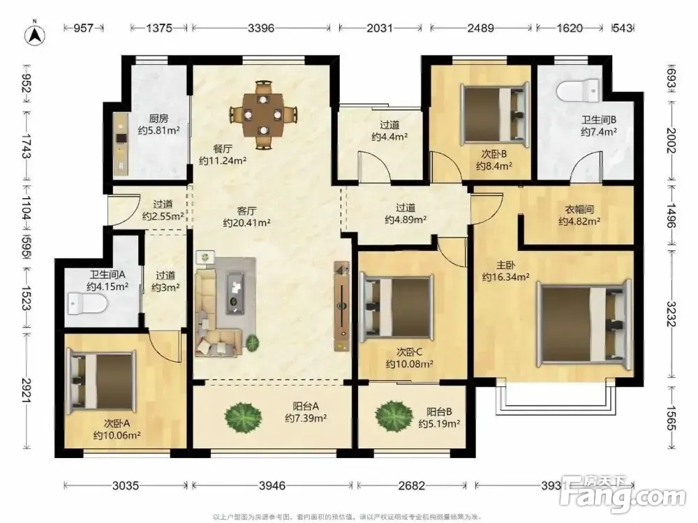 户型齐全,主打南北通透,主卧带卫四居