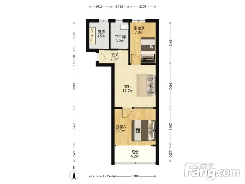 户型齐全,主打明厨,明卫,客厅朝南,全明格局二居