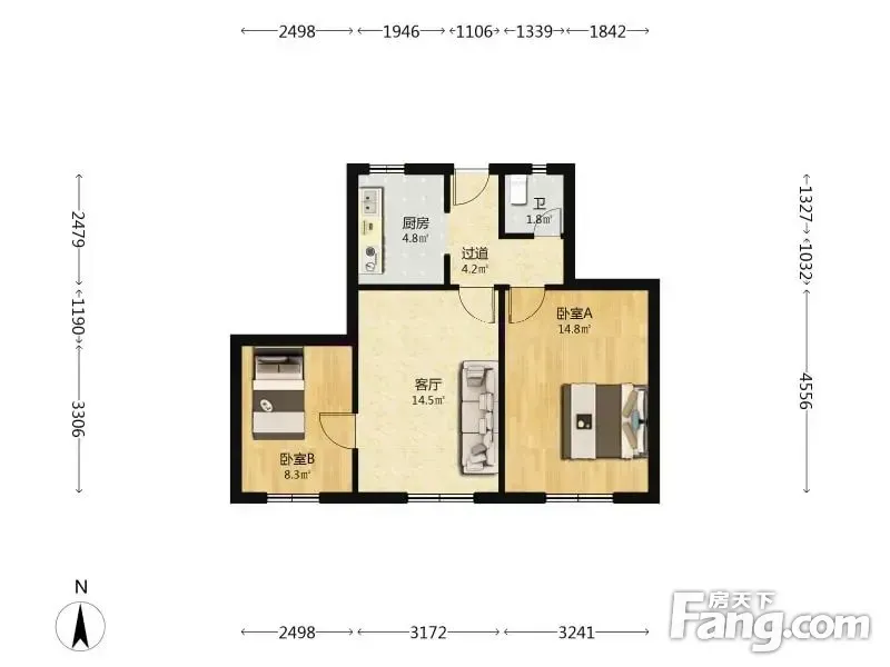 户型齐全,主打户型方正,明厨,明卫,客厅朝南一居