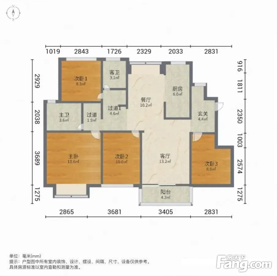 户型齐全,主打南北通透,客厅朝南三居
