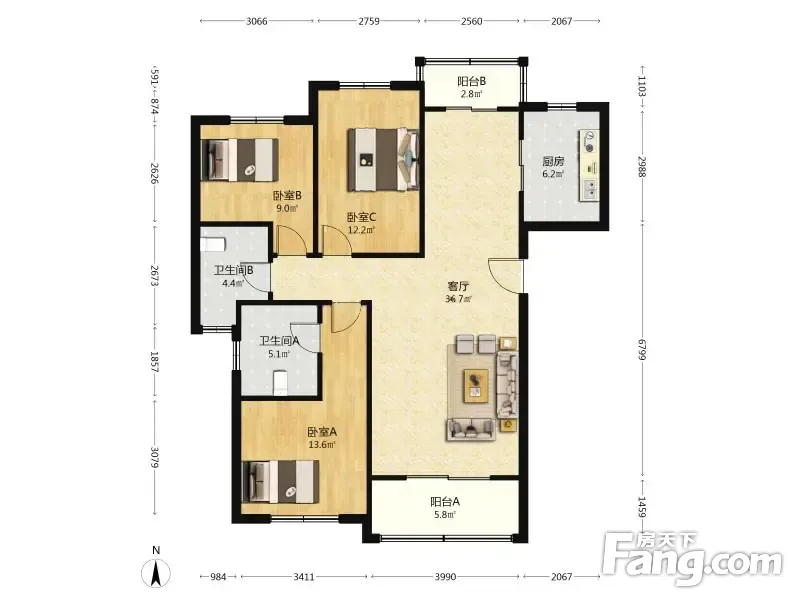 3室2厅1卫