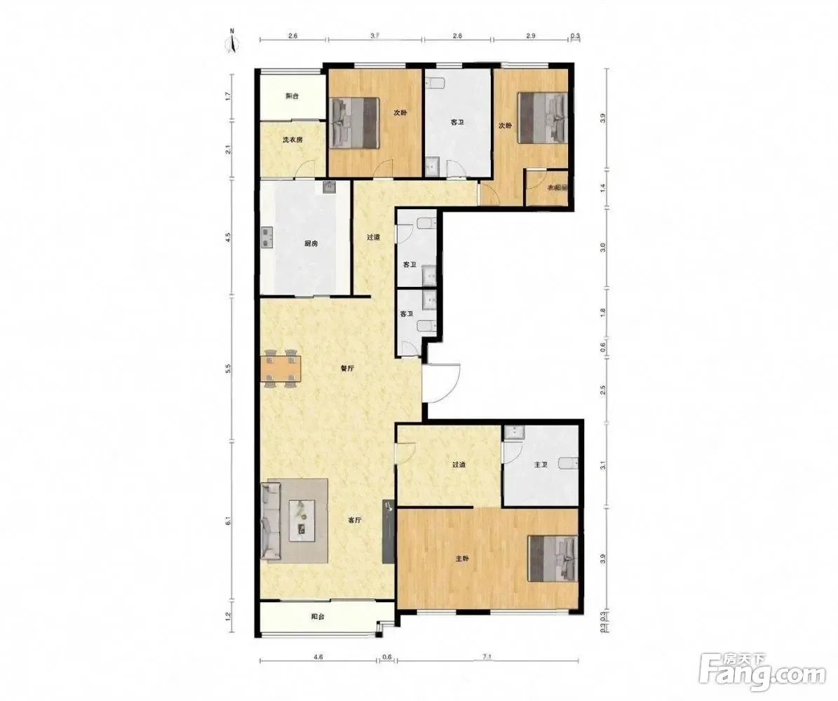 户型齐全,主打明卫,客厅朝南,双阳台三居