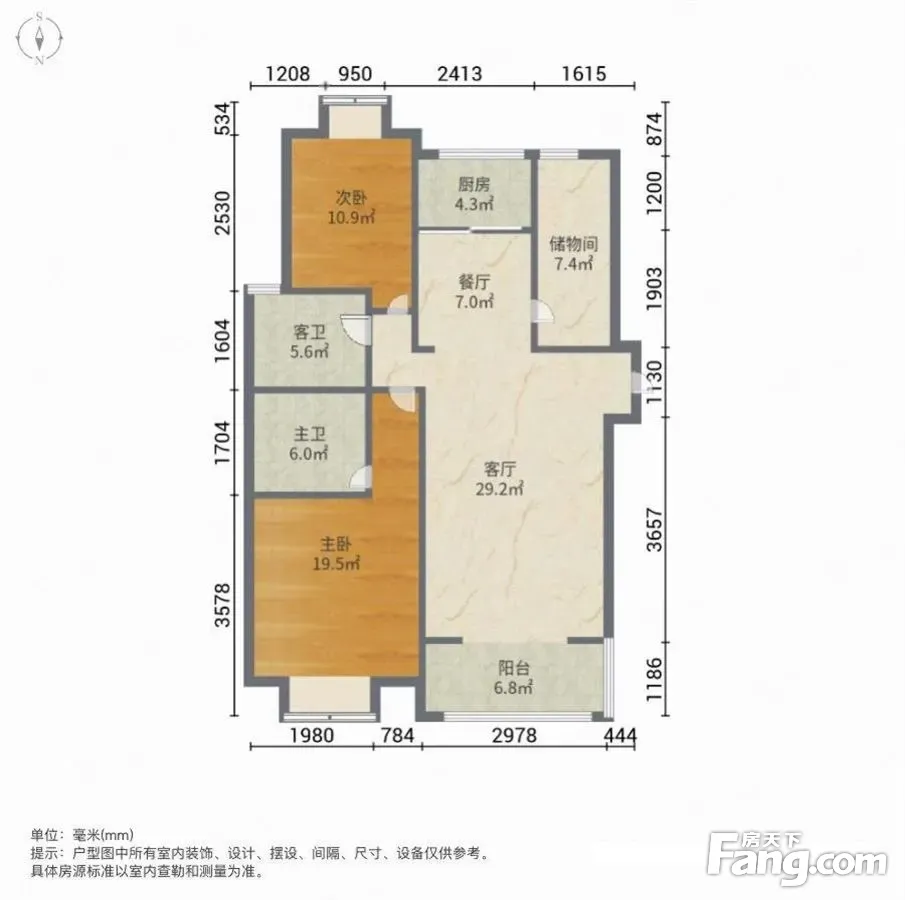 户型齐全,主打户型方正,明卫,明厨,客厅朝南,全明格局,主卧朝南二居