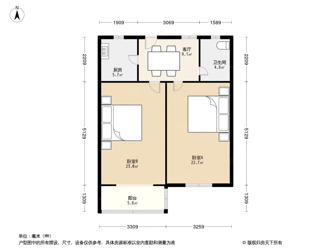 户型齐全,主打户型方正,明厨,明卫,客厅朝南二居