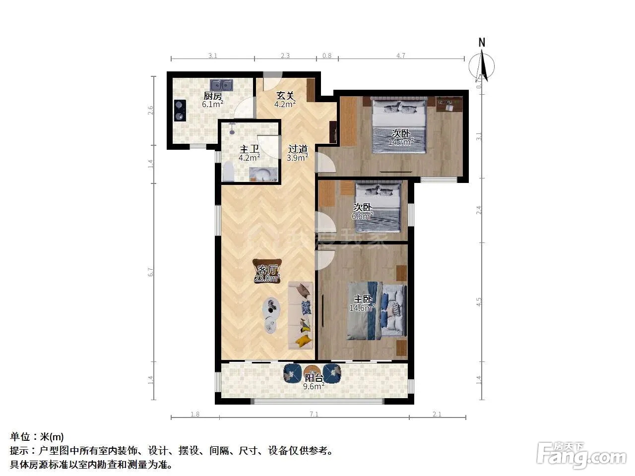 户型介绍 该户型为经典三室一厅设计,南北通透,采光充足。客厅宽敞明亮,主卧连接景观阳台,私密性强;三个卧室大小适中,灵活使用。整体布局合理,空间利用率高,无论是家庭居住还是朋友小聚,满足多样化的生活需求。