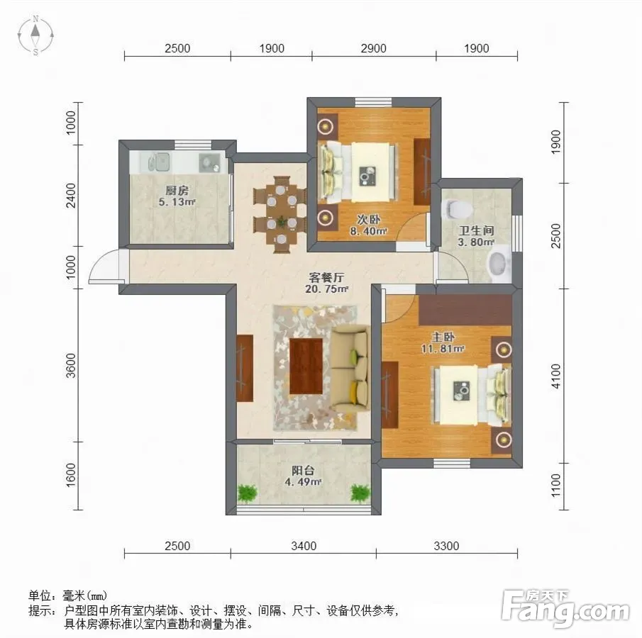 户型齐全,主打户型方正,明厨,明卫,客厅朝南,全明格局,主卧朝南二居