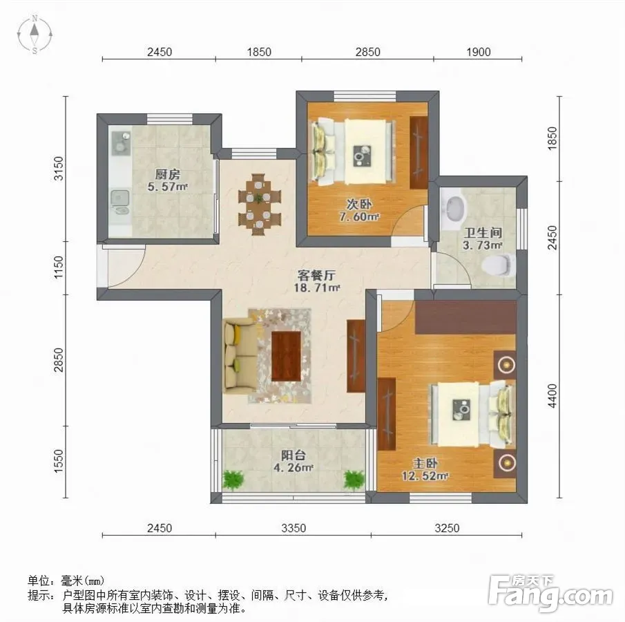 户型齐全,主打户型方正,明厨,明卫,客厅朝南,全明格局,主卧朝南二居