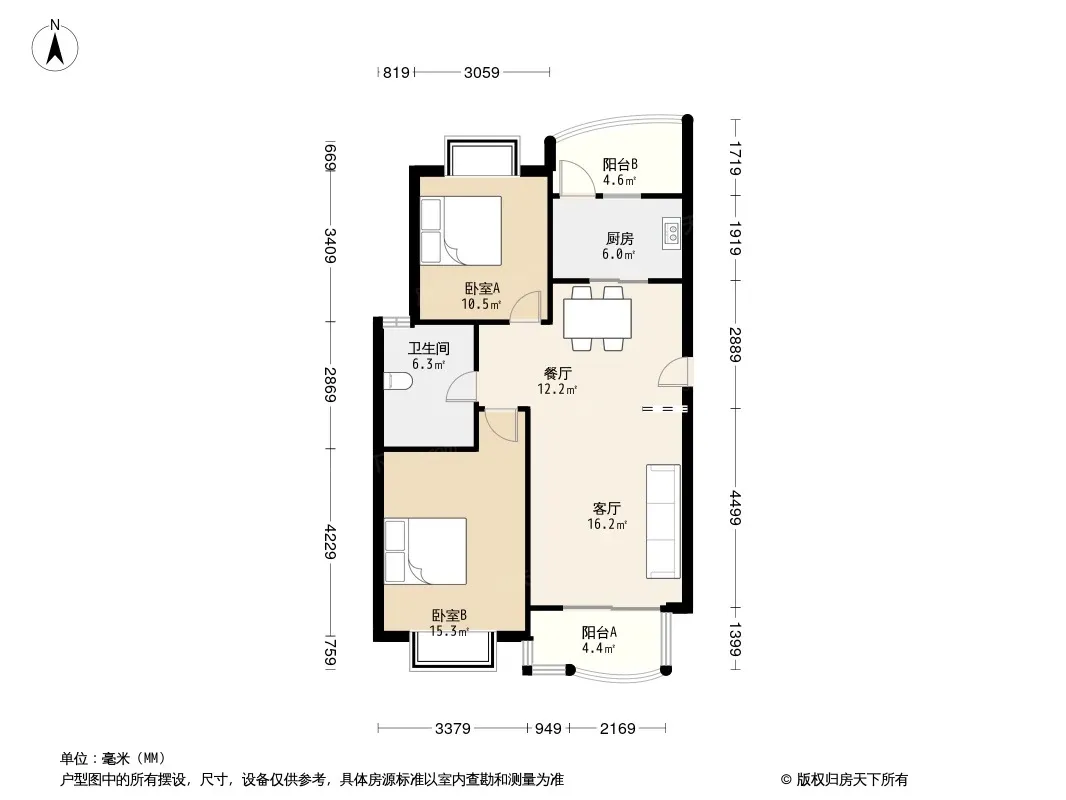 户型齐全,主打户型方正,明卫,双阳台,主卧朝南二居