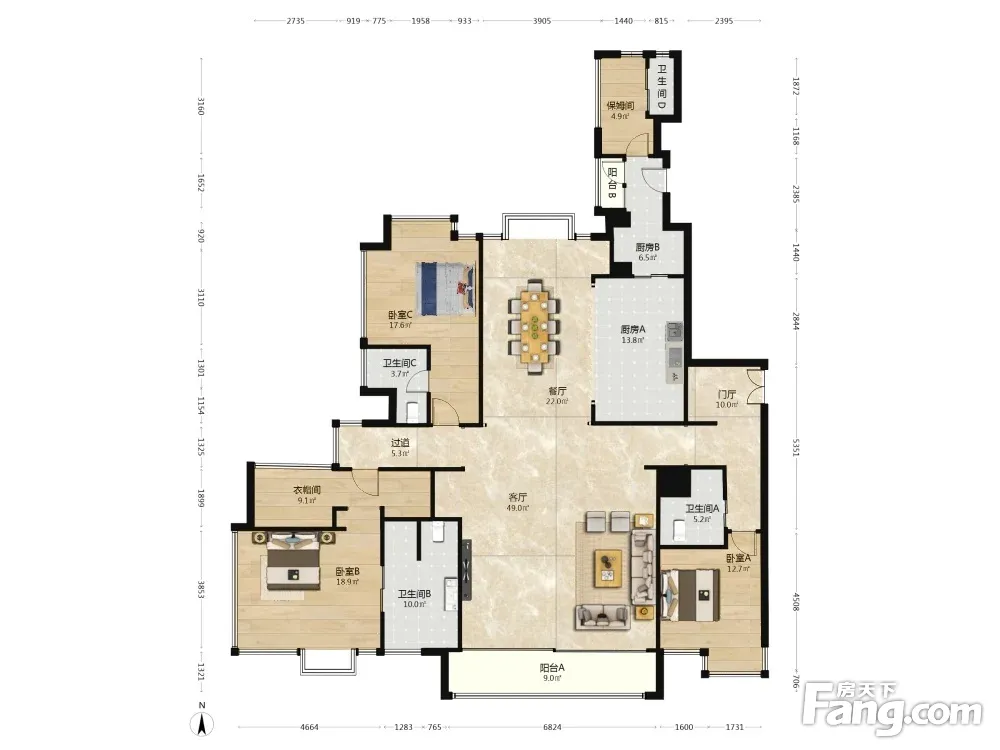 户型齐全,主打户型方正,明卫,独立衣帽间,双卧朝南,主卧朝南三居