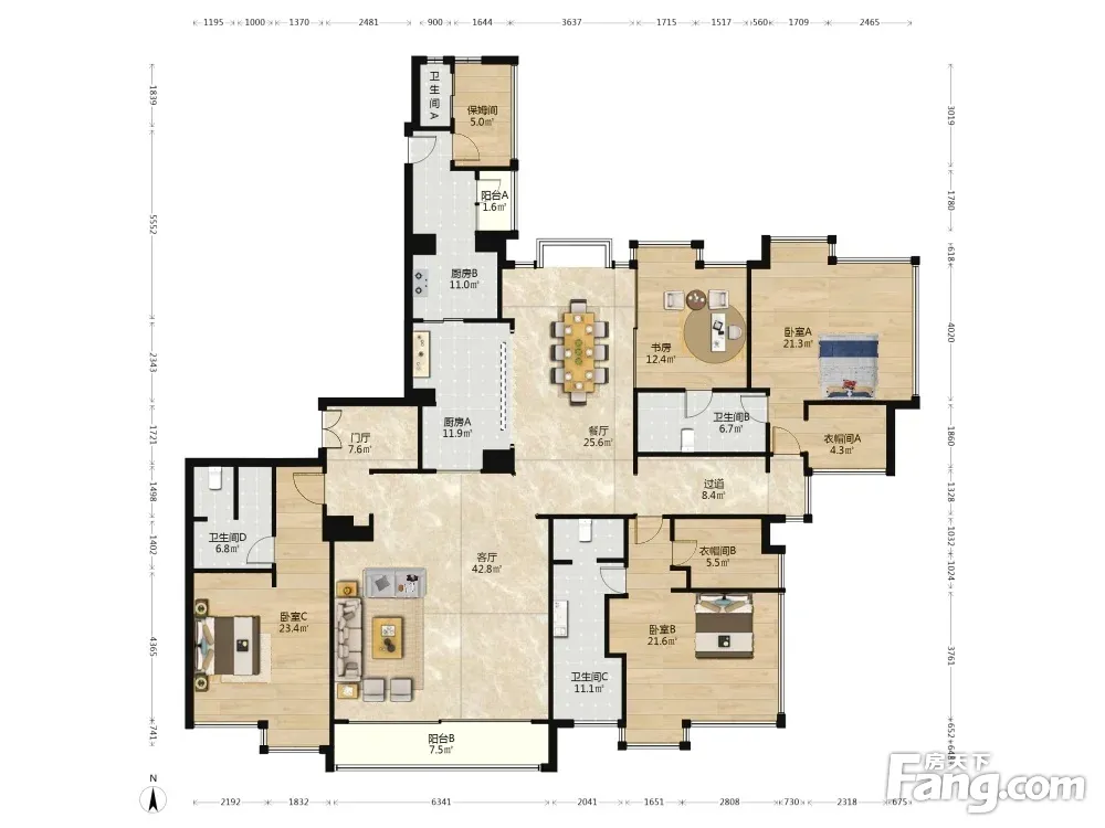 户型齐全,主打户型方正,明卫,独立衣帽间,双卧朝南,主卧朝南三居
