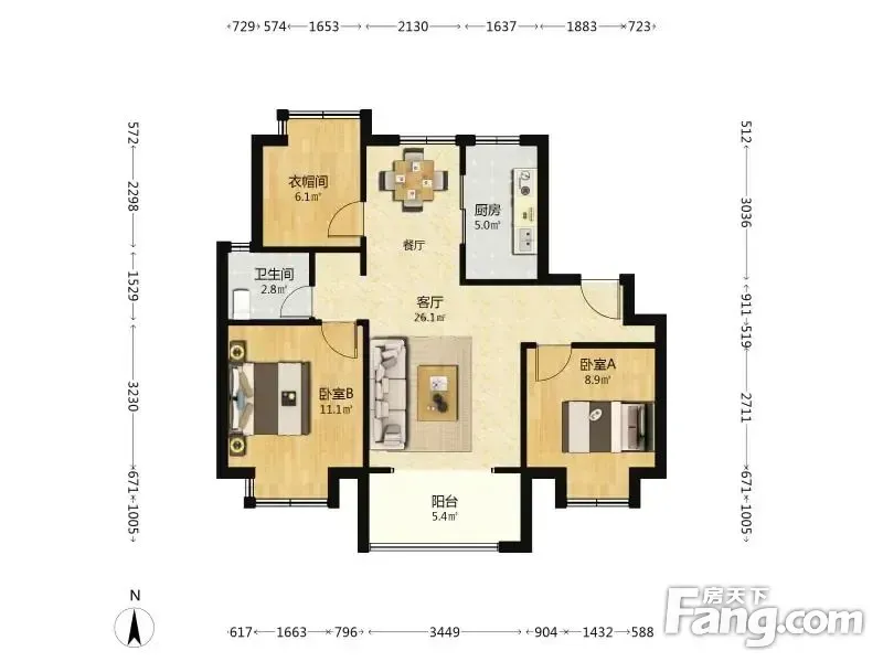 户型齐全,主打南北通透,户型方正三居