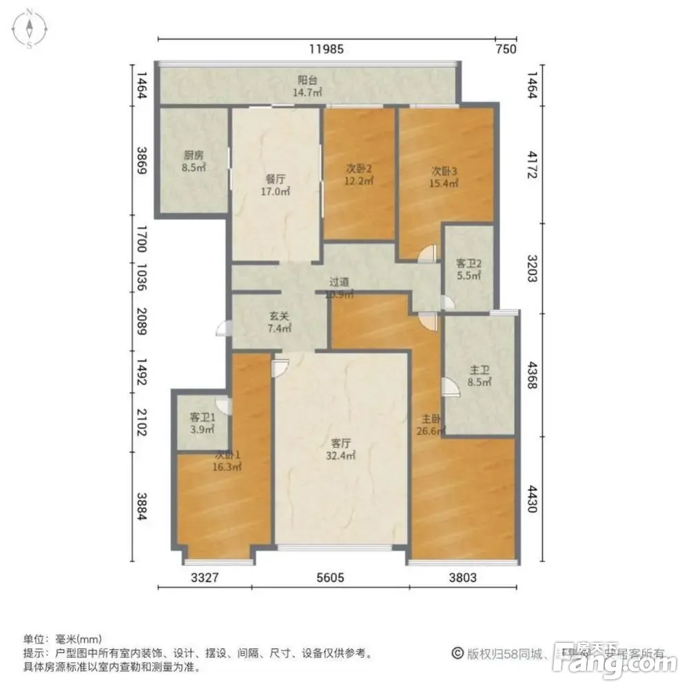 户型齐全,主打南北通透,户型方正五居