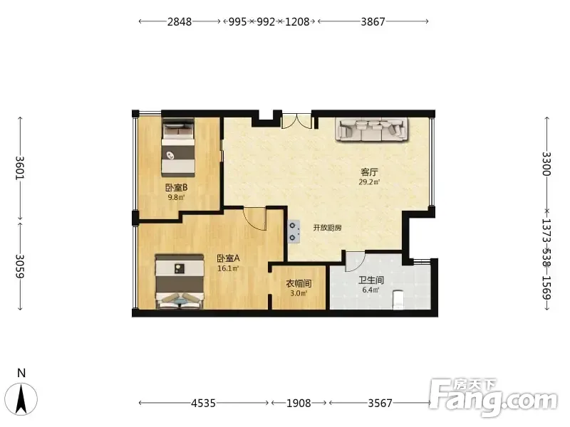 户型齐全,主打户型方正,明厨,双阳台,主卧朝南二居