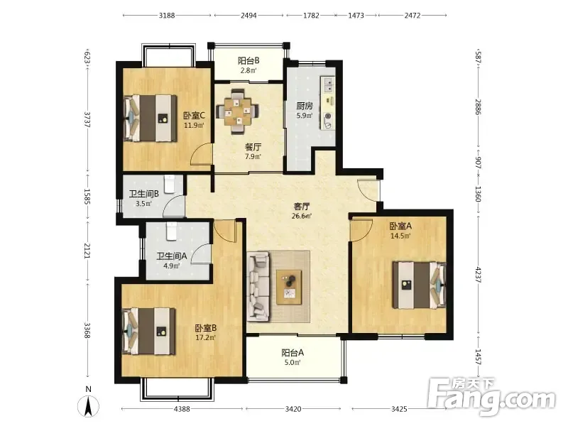 3室2厅1卫