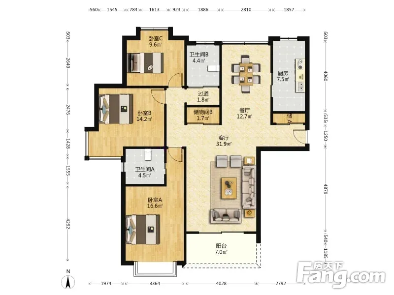 户型齐全,主打户型方正,明厨,明卫,主卧朝南三居